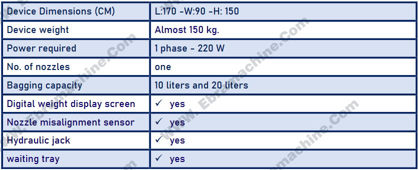 The mechanism of this device is that the operator manually puts the gallons under the nozzle of the device, the nozzle of the device comes down and enters the opening of the gallon by pressing the start button of the device and performs the injection operation inside the gallon. On which the gallon is placed, it is on the load cell tray. The failure of the injection valve of the device is related to the load cell tray. After the weight of the gallon reaches the specified weight, the nozzles come out and the operator must manually remove the gallons from under the nozzle and replace the empty gallons. The lids of the filled gallons are closed manually and locked with a special wrench for gallon lids.